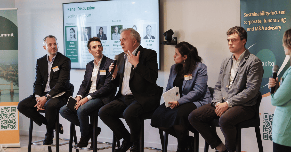 The first panel, chaired by Dr Niki Hutson of Bureau Veritas Solutions, explored what it really takes to grow sustainable ventures up to and beyond the £100 million valuation. Speakers Steve Henney (Aquis Stock Exchange), Henry Philipson (Beringea), Andrew Keen (Edison), Matt Coles (Palatine Private Equity), and Mathangi Chandrasekhar (Gresham House) shared candid insights on balancing ambition with accountability.