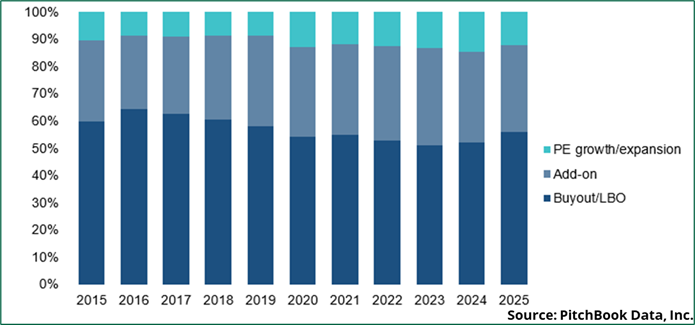• Add-ons – $149.9B (−12%): Slight slowdown; steady mid-market consolidation in Europe and North America.
